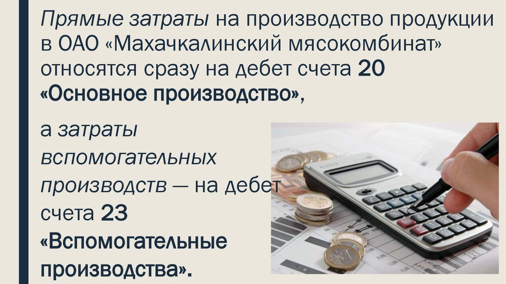 Прямые затраты на производство продукциив ОАО «Махачкалинский мясокомбинат»