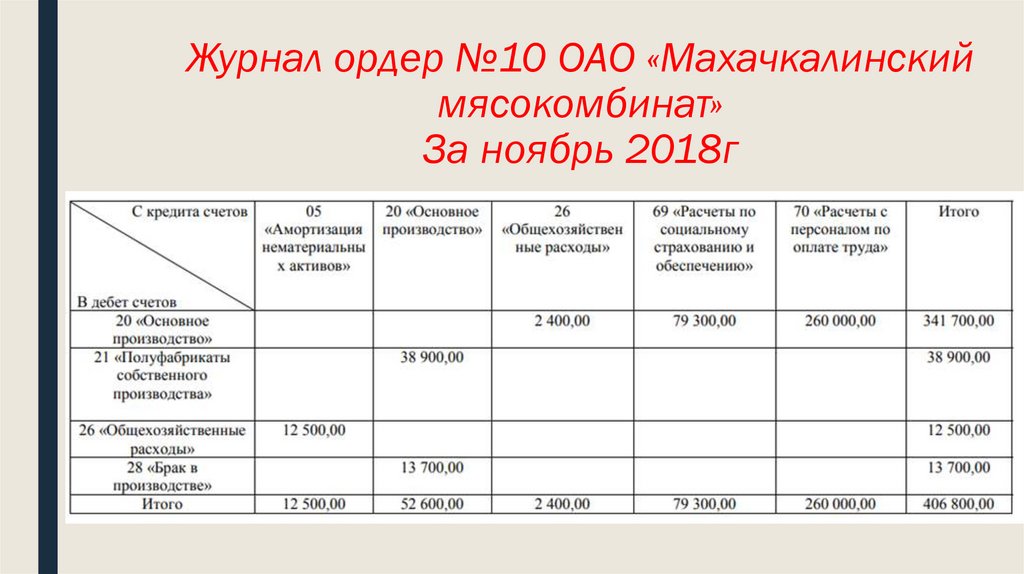 Журнал ордер №10 ОАО «Махачкалинскиймясокомбинат»