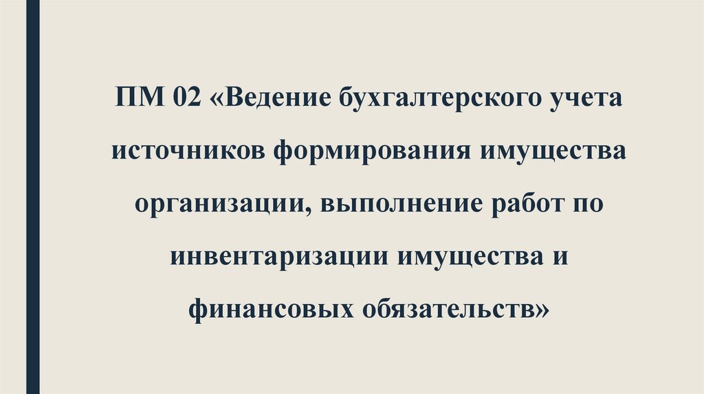ПМ 02 «Ведение бухгалтерского учетаисточников формирования имущества