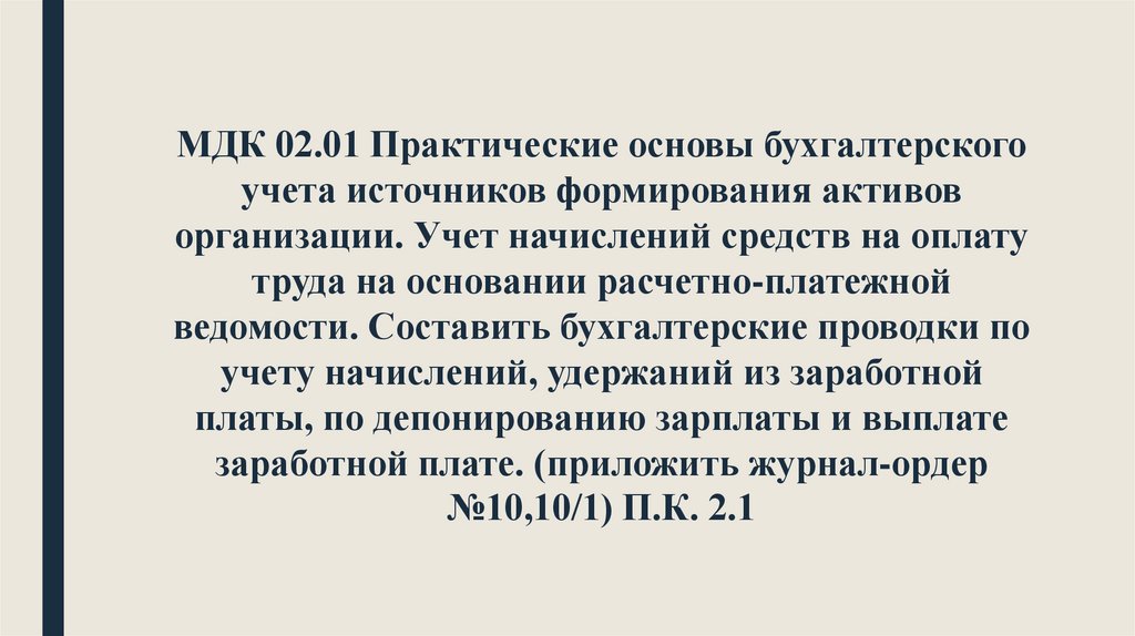 МДК 02.01 Практические основы бухгалтерскогоучета источников формирования активов