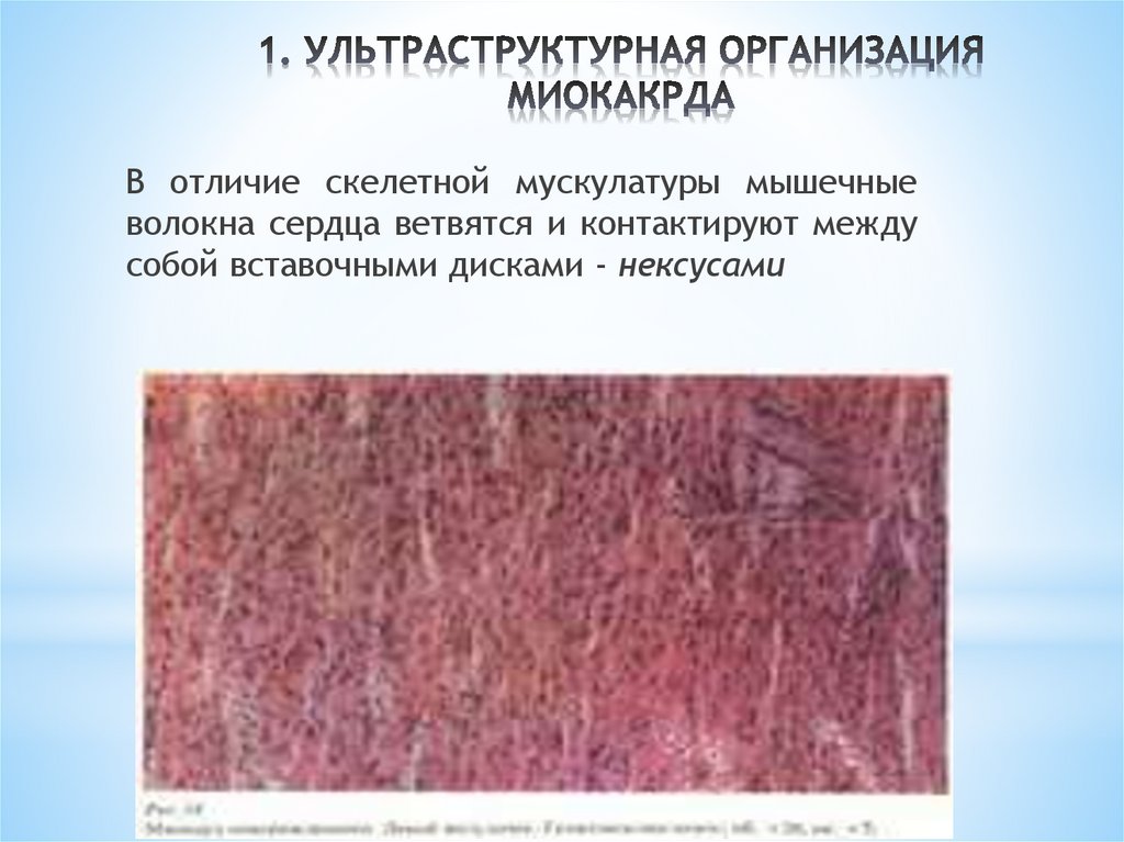 В отличие скелетной мускулатуры мышечныеволокна сердца ветвятся и контактируют между