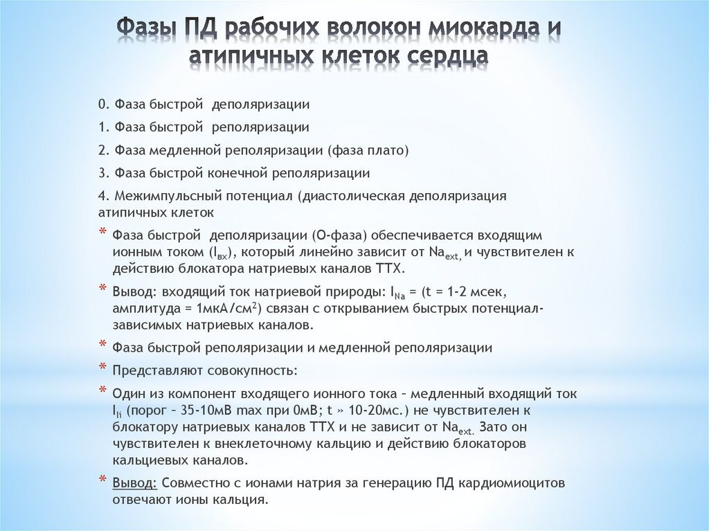 0. Фаза быстрой деполяризации1. Фаза быстрой реполяризации