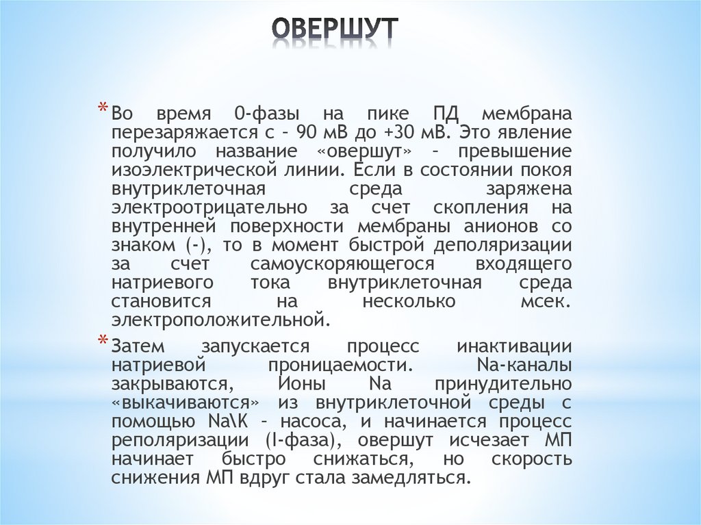 перезаряжается с – 90 мВ до +30 мВ. Это явление