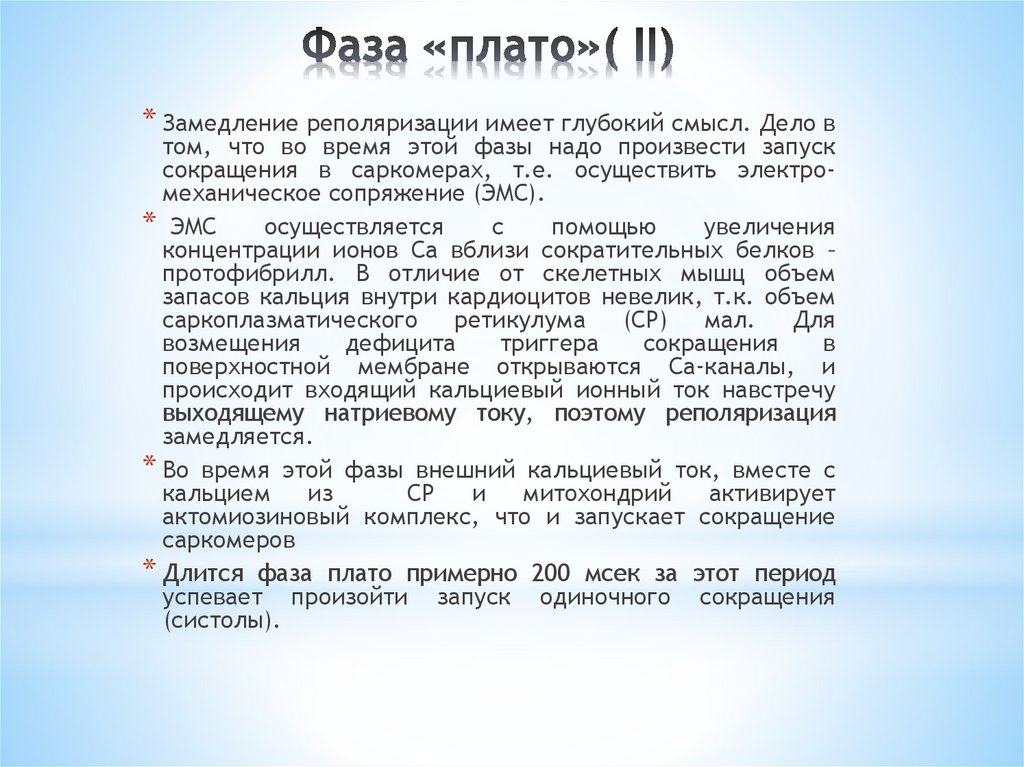 2. Фаза медленной реполяризации (фаза плато)