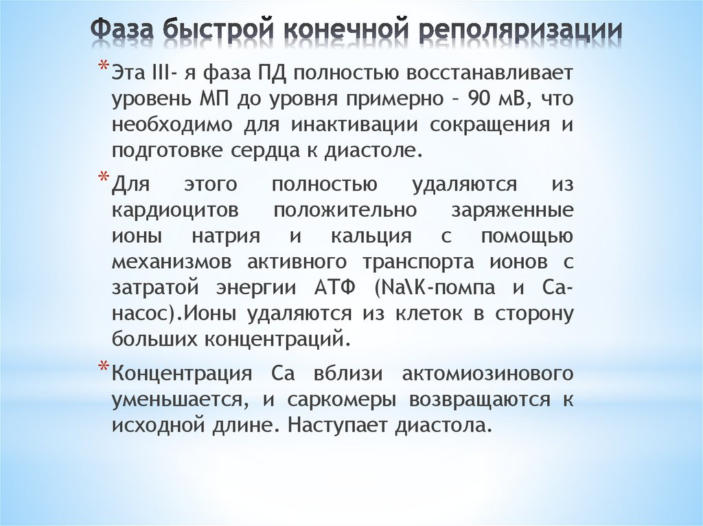Фаза быстрой реполяризации и медленной реполяризации