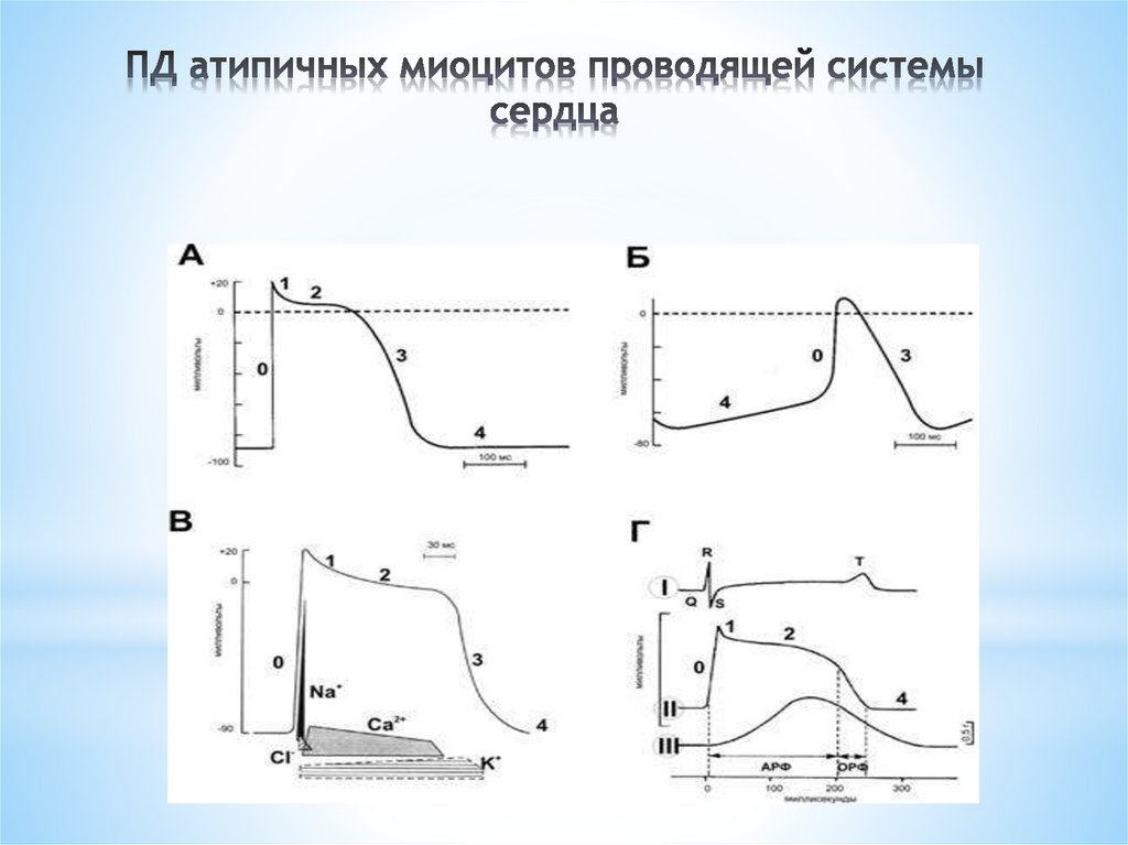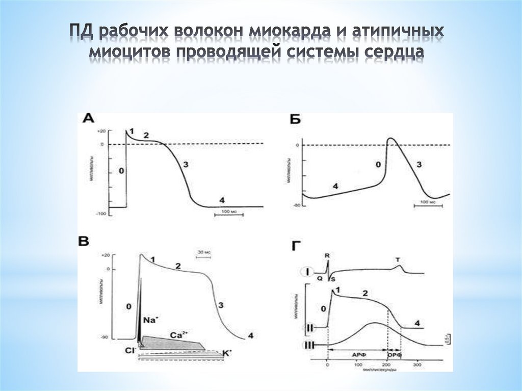 Вывод: Совместно с ионами натрия за генерацию ПД кардиомиоцитов