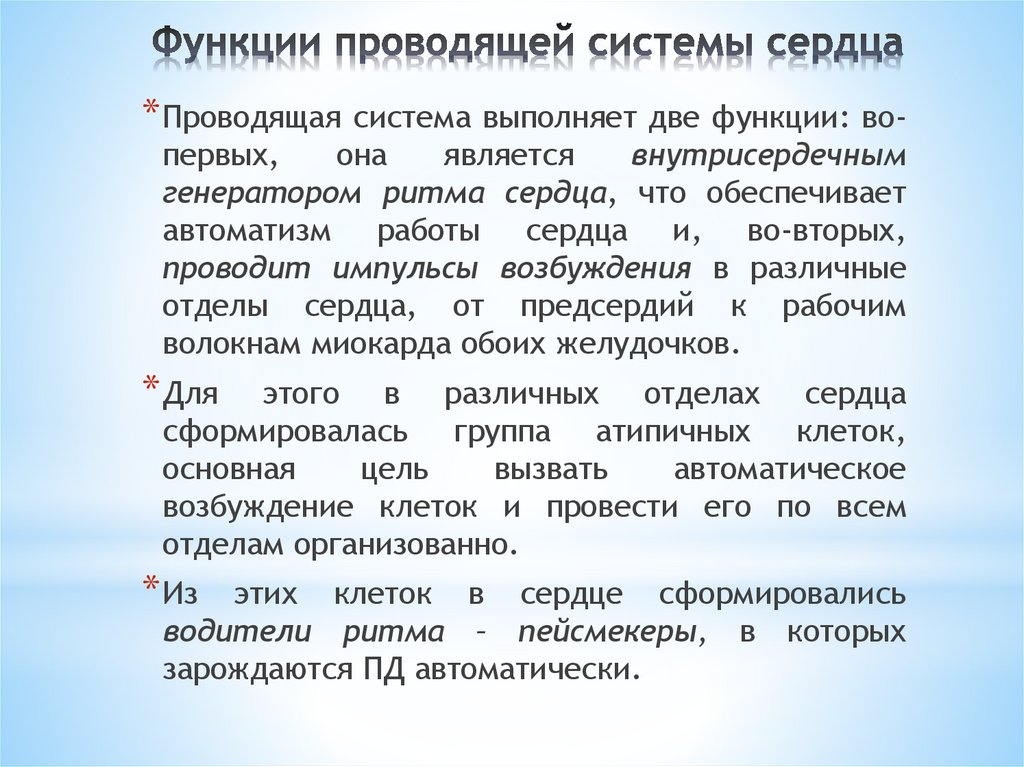 низкой возбудимостью, односторонним и замедленным проведением возбуждения.