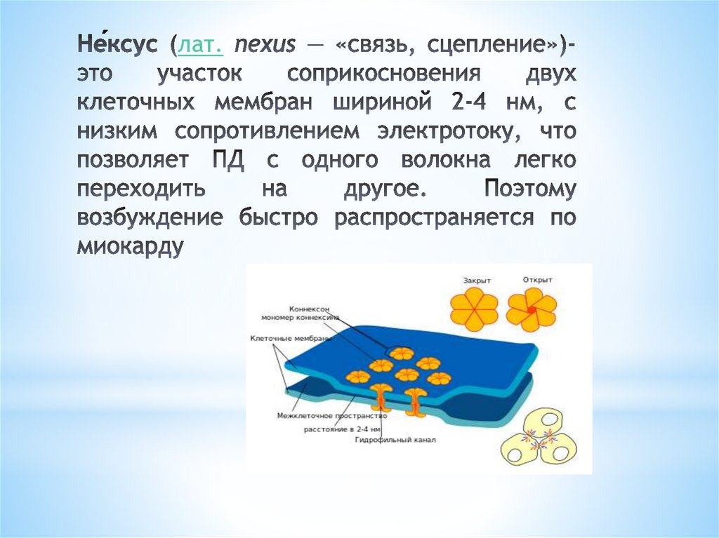 большое количество десмосом. В мышцах желудочков скорость проведения снова