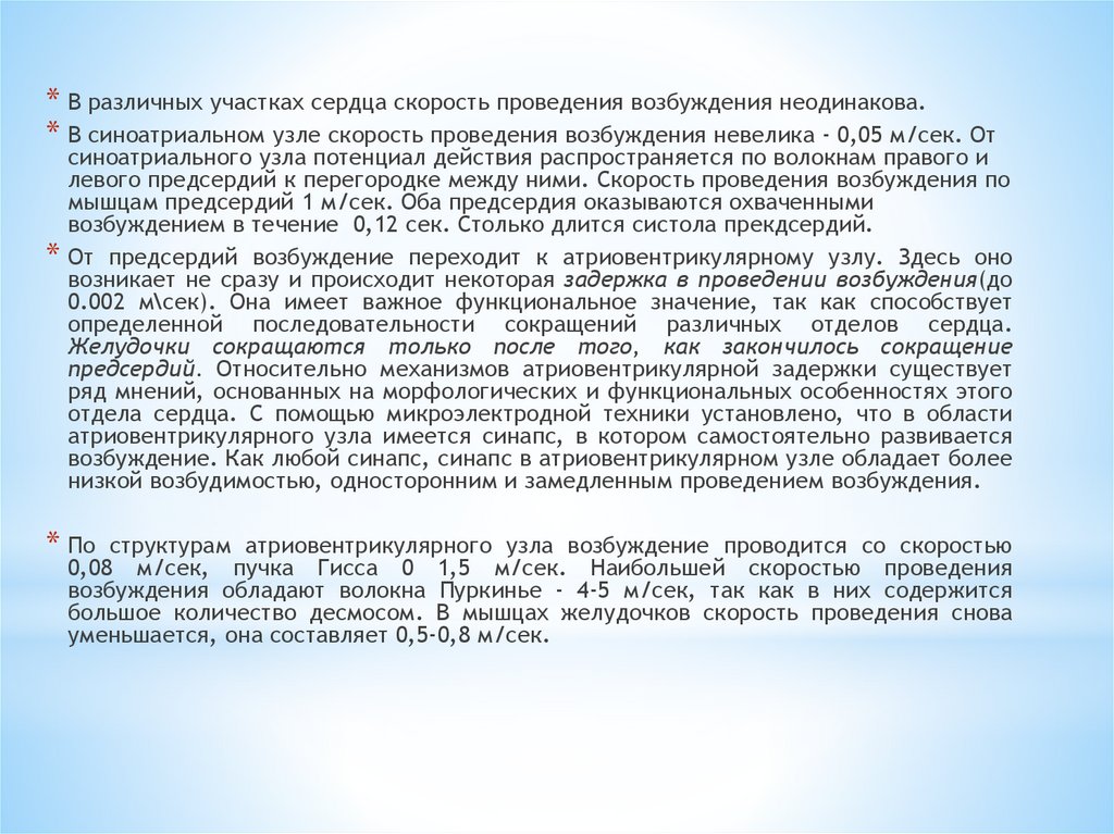 0,08 м/сек, пучка Гисса 0 1,5 м/сек. Наибольшей скоростью проведения