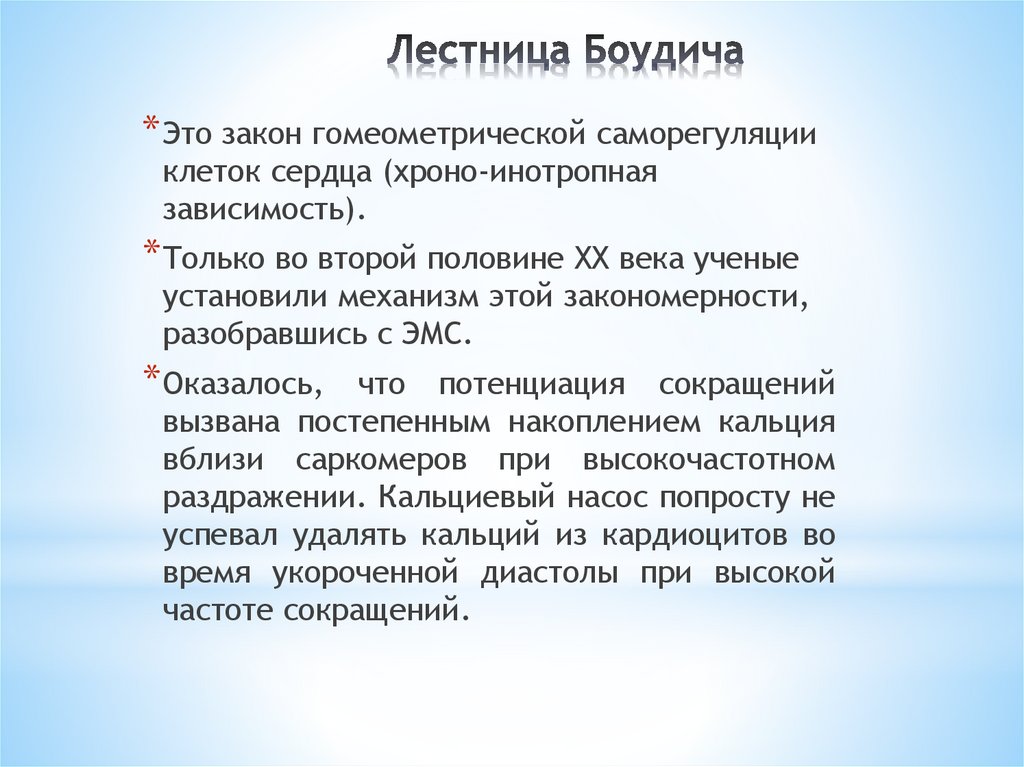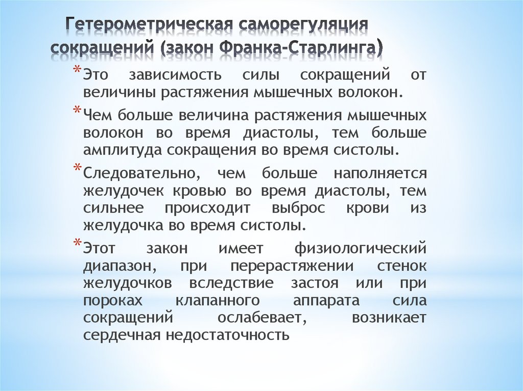 * Это закон гомеометрической саморегуляцииклеток сердца (хроно-инотропная