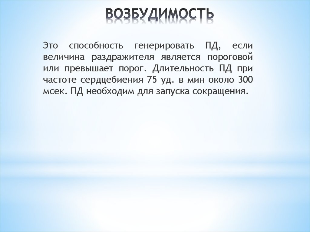 * ВОЗБУДИМОСТЬ* ПРОВОДИМОСТЬ