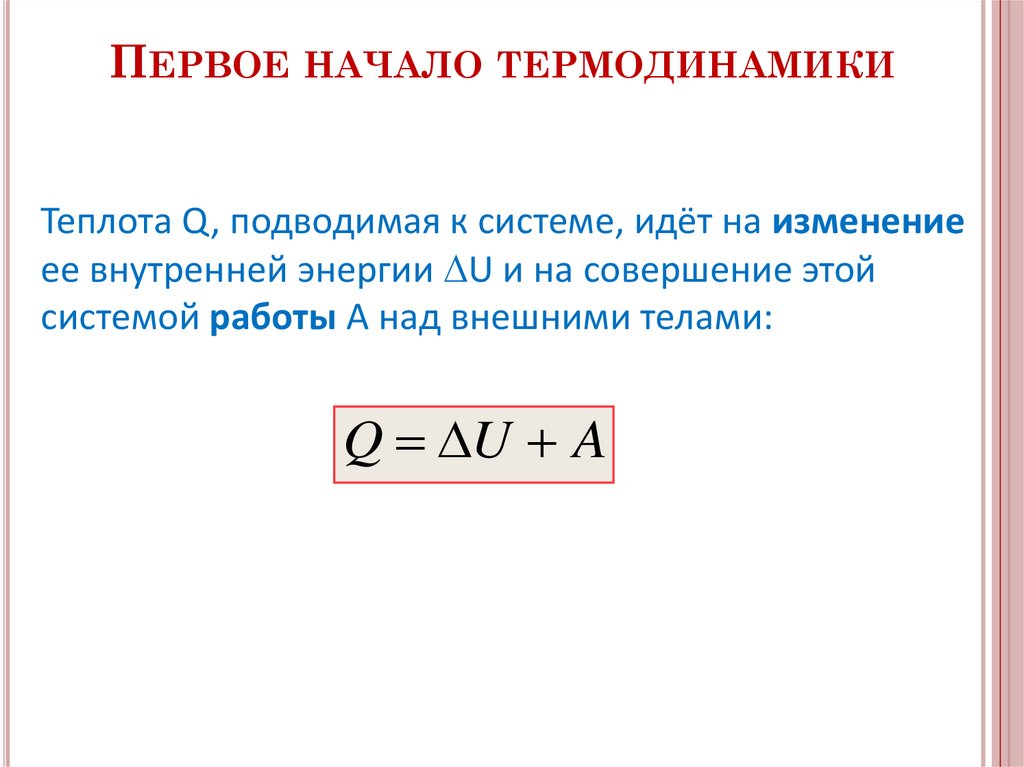 ПЕРВОЕ НАЧАЛОТЕРМОДИНАМИКИ