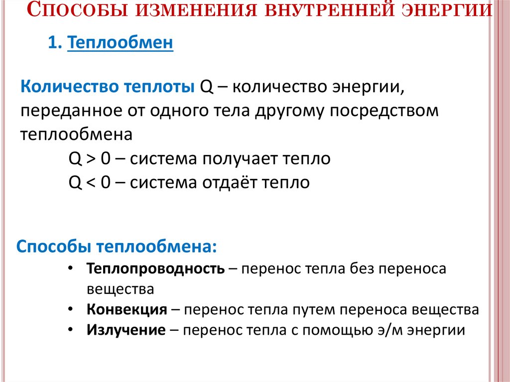 СПОСОБЫ ИЗМЕНЕНИЯ ВНУТРЕННЕЙЭНЕРГИИ