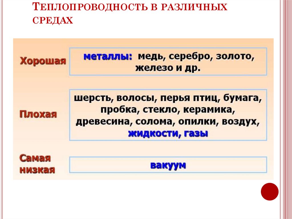 ТЕПЛОПРОВОДНОСТЬ В РАЗЛИЧНЫХСРЕДАХ