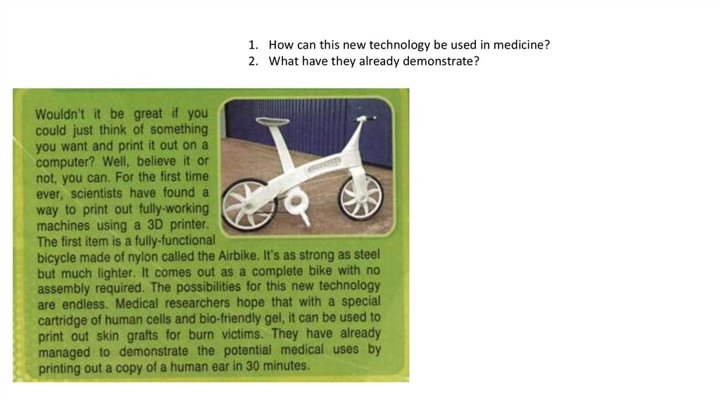 1. How can this new technology be used in medicine?2. What have they already demonstrate?