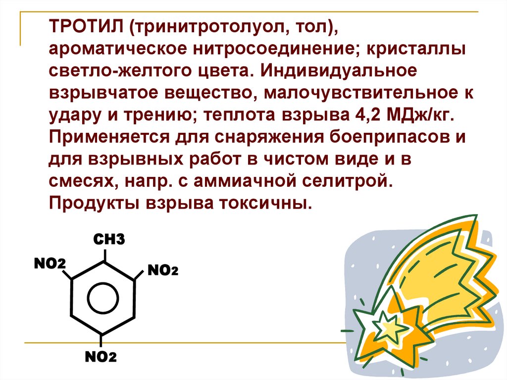 ТРОТИЛ (тринитротолуол, тол),ароматическое нитросоединение; кристаллы