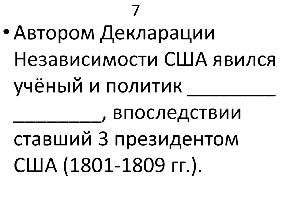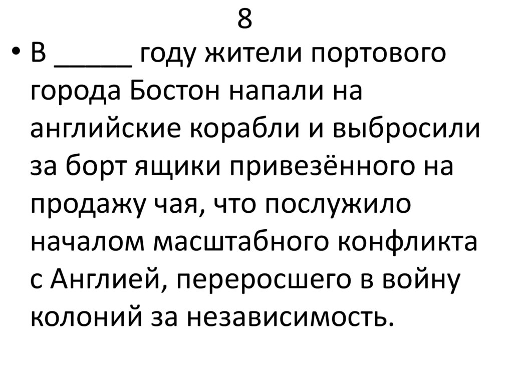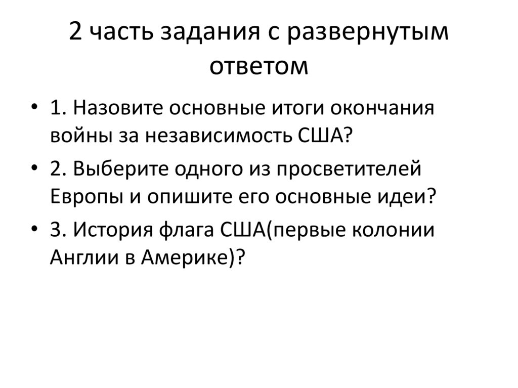 Тестовые задания. Просветители Европы. Колонии. Независимость США