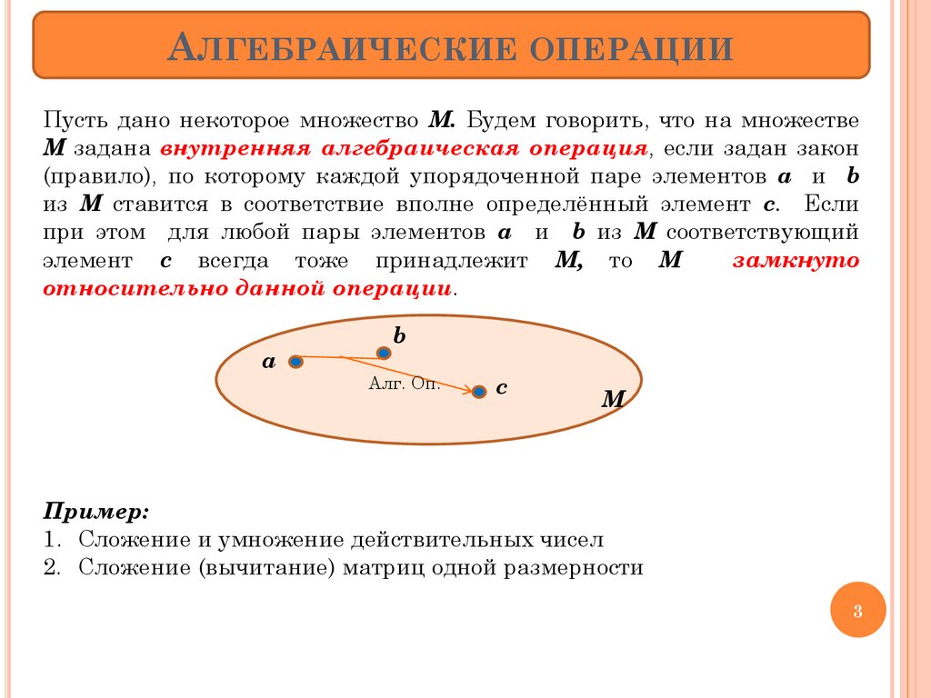 АЛГЕБРАИЧЕСКИЕ ОПЕРАЦИИПусть дано некоторое множество М. Будем говорить, что на множестве