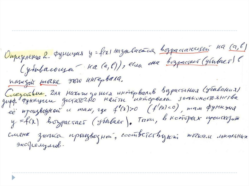 Интервалы возрастания (убывания) функции и экстремумы. Лекция 5