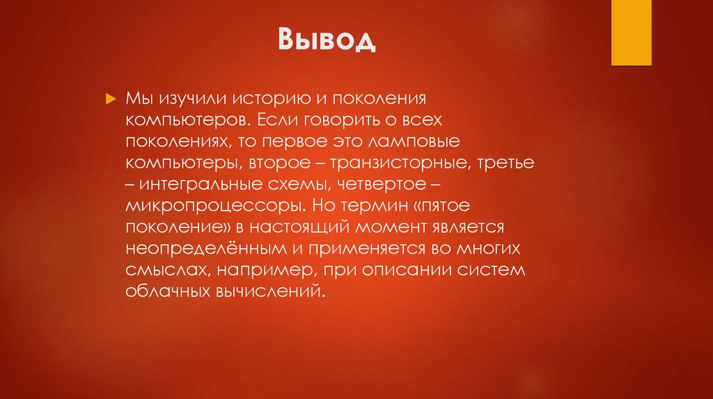 ВыводМы изучили историю и поколения