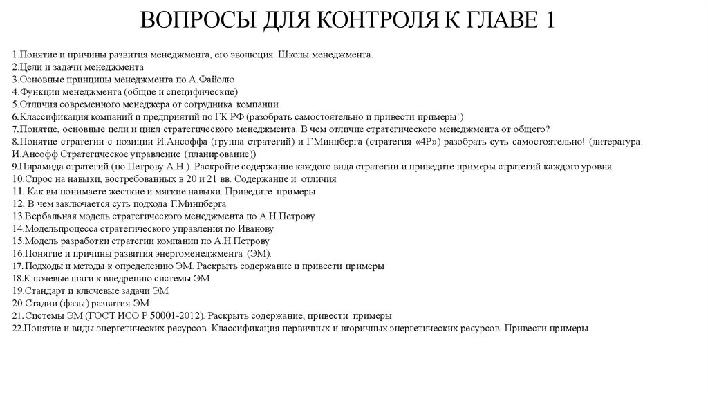 ЭНЕРГОМЕНЕДЖМЕНТ-1Вопросы к главе 1 и КТ-1