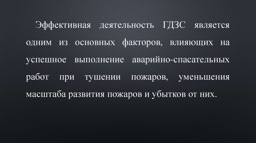 Эффективная деятельность ГДЗС являетсяодним из основных факторов, влияющих на