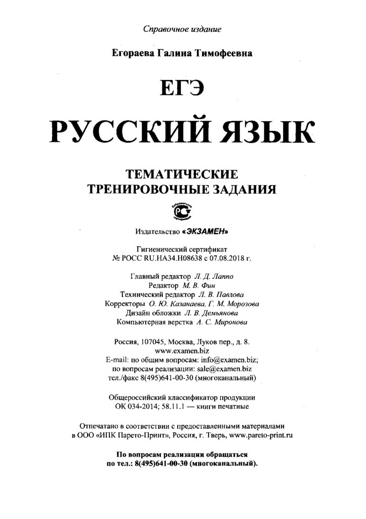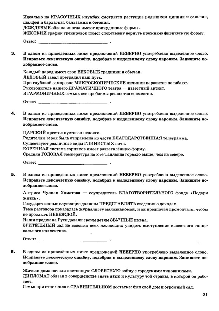 Тренировочные задания (1-21). ЕГЭ. Русский язык