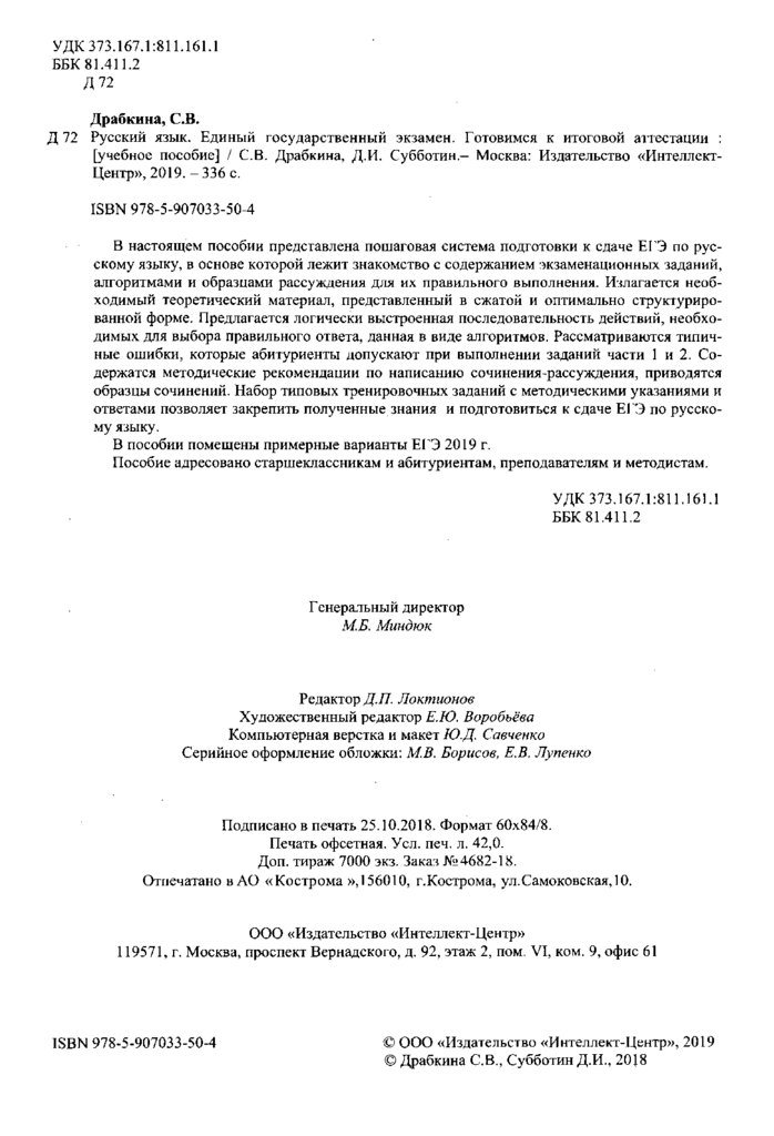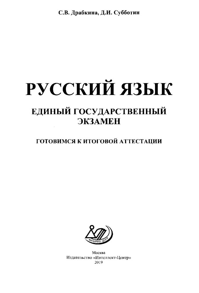 ЕГЭ 2020, русский язык (С. В. Драбкина, Д. И. Субботин, 2019 г.)