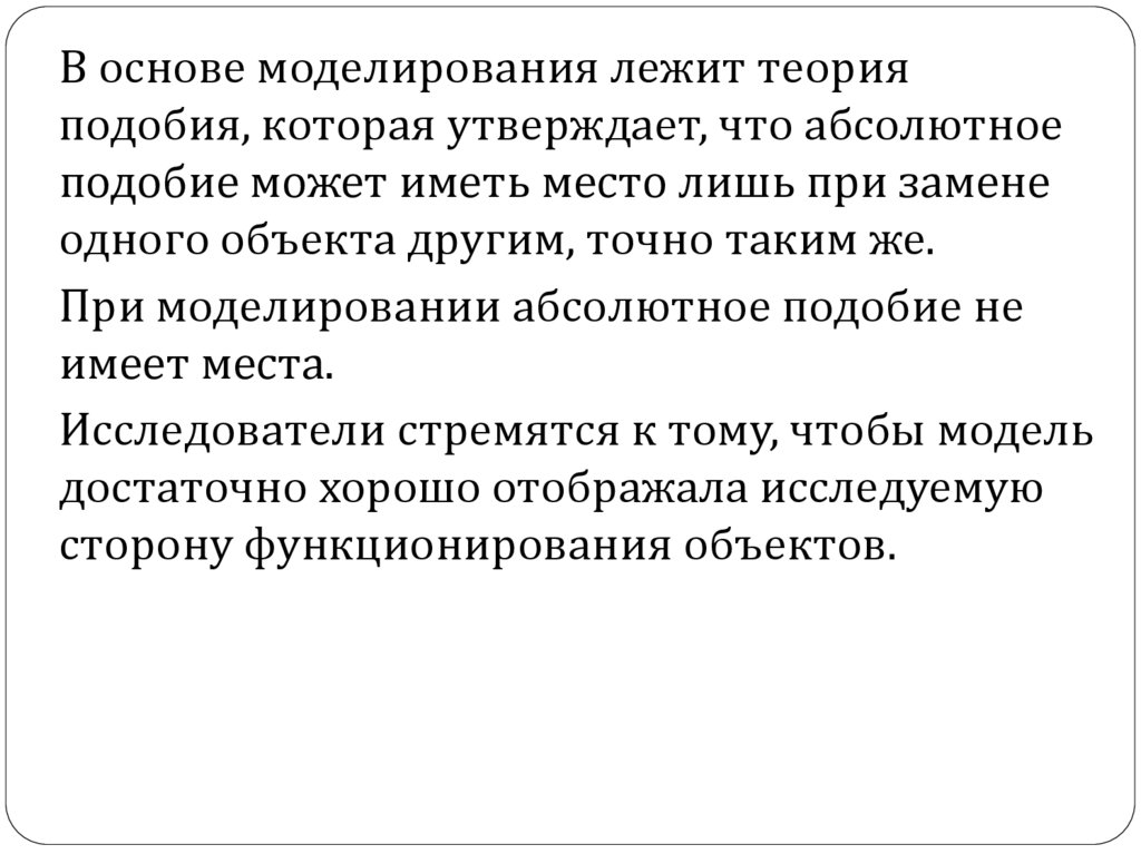 В основе моделирования лежит теорияподобия, которая утверждает, что абсолютное