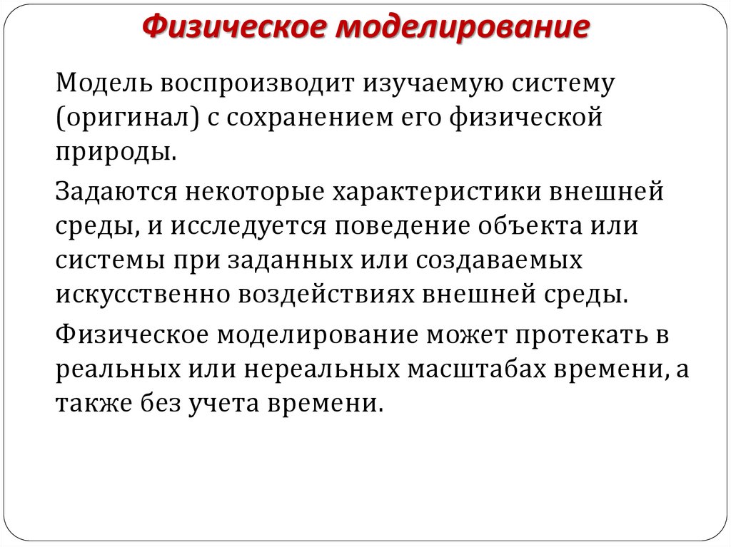 Физическое моделированиеМодель воспроизводит изучаемую систему