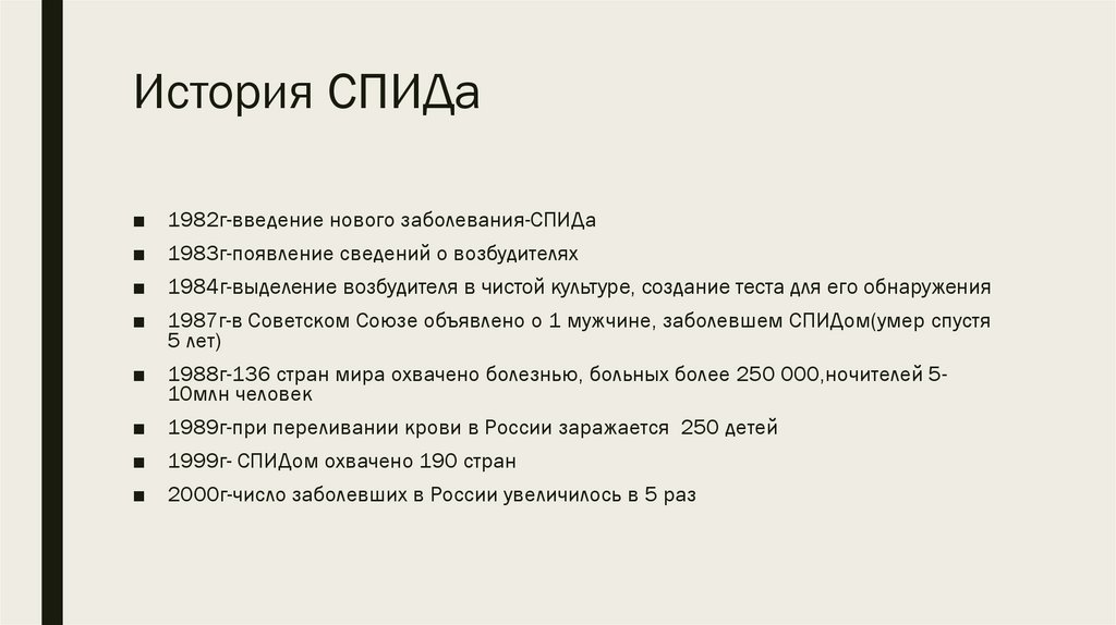 ■ 1987г-в Советском Союзе объявлено о 1 мужчине, заболевшем СПИДом(умер спустя