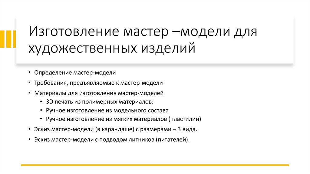 • Эскиз мастер-модели (в карандаше) с размерами – 3 вида.
