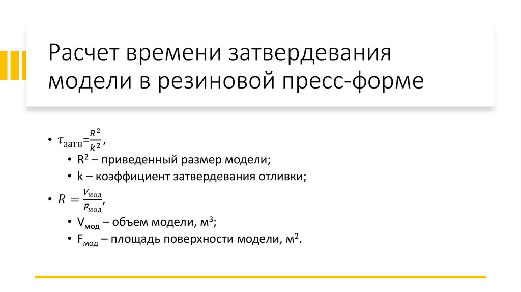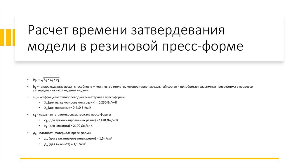 Расчет времени затвердеваниямодели в резиновой пресс-форме
