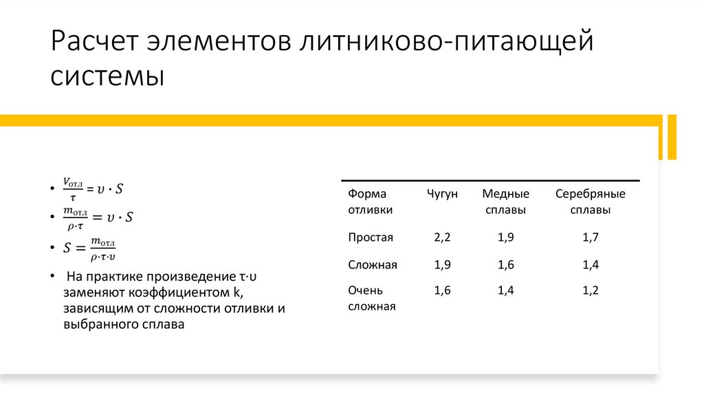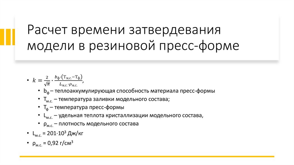 • Расчет времени затвердевания модельного состава в пресс-форме
