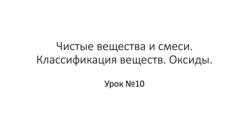 Чистые вещества и смеси. Классификация веществ. Оксиды