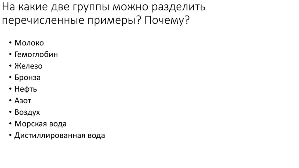 На какие две группы можно разделитьперечисленные примеры? Почему?