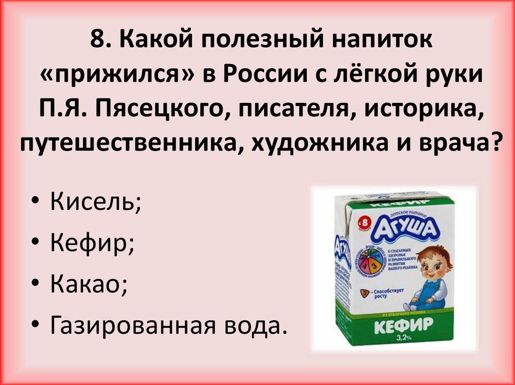 8. Какой полезный напиток«прижился» в России с лёгкой руки