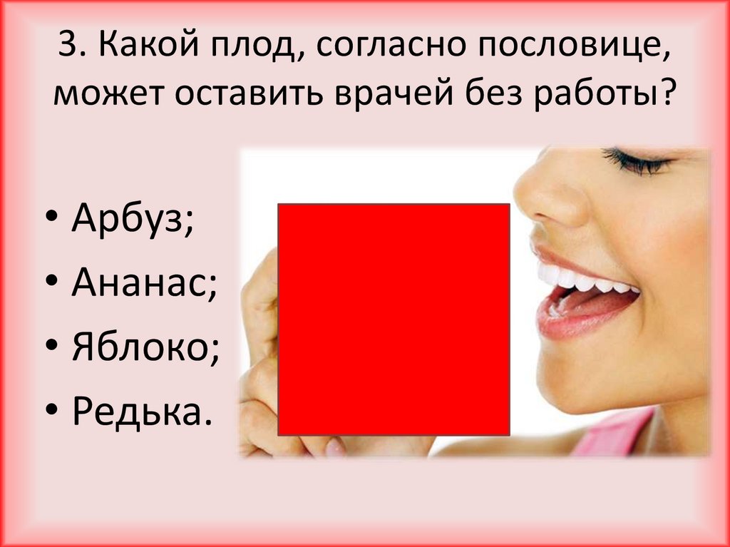 3. Какой плод, согласно пословице,может оставить врачей без работы?