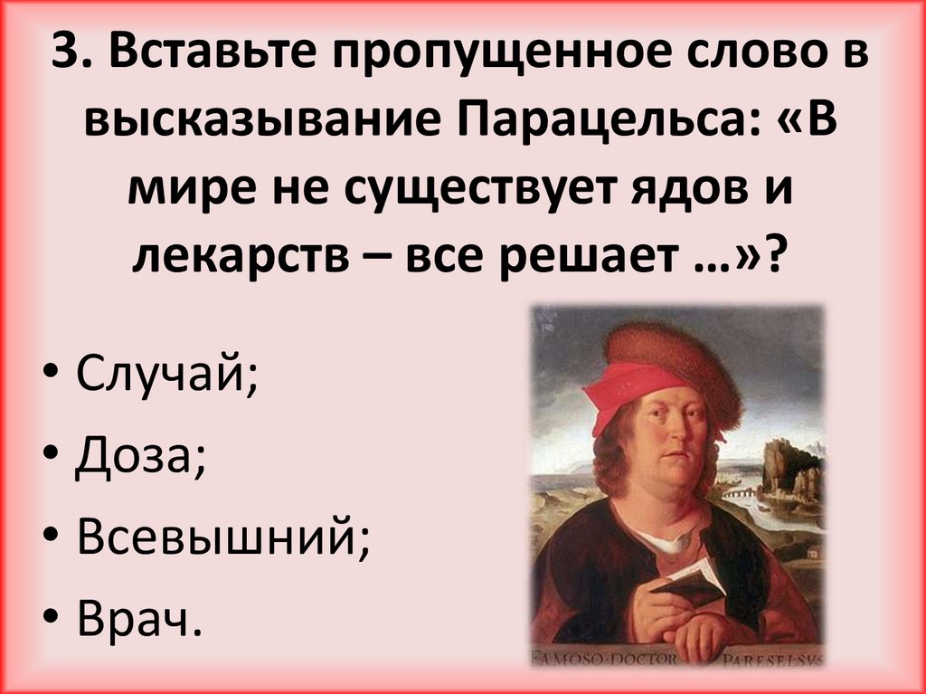 3. Вставьте пропущенное слово ввысказывание Парацельса: «В