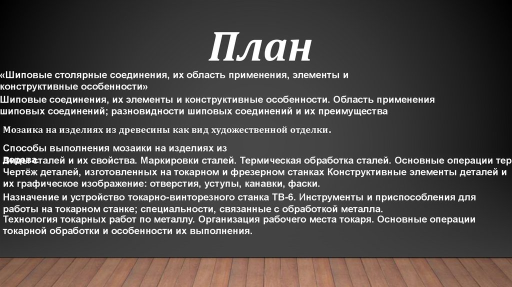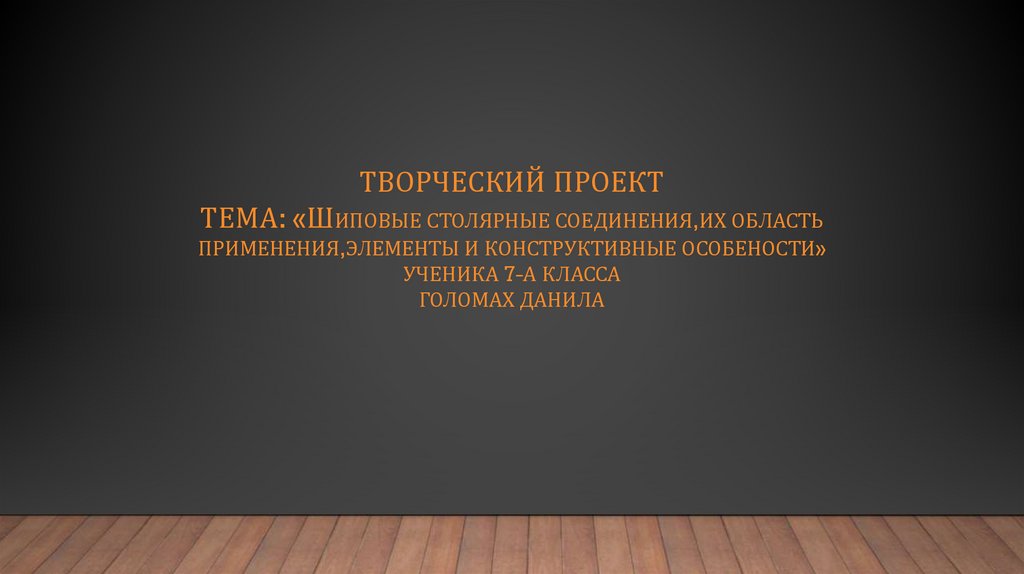ТВОРЧЕСКИЙ ПРОЕКТТЕМА: «ШИПОВЫЕ СТОЛЯРНЫЕ СОЕДИНЕНИЯ,ИХ ОБЛАСТЬ