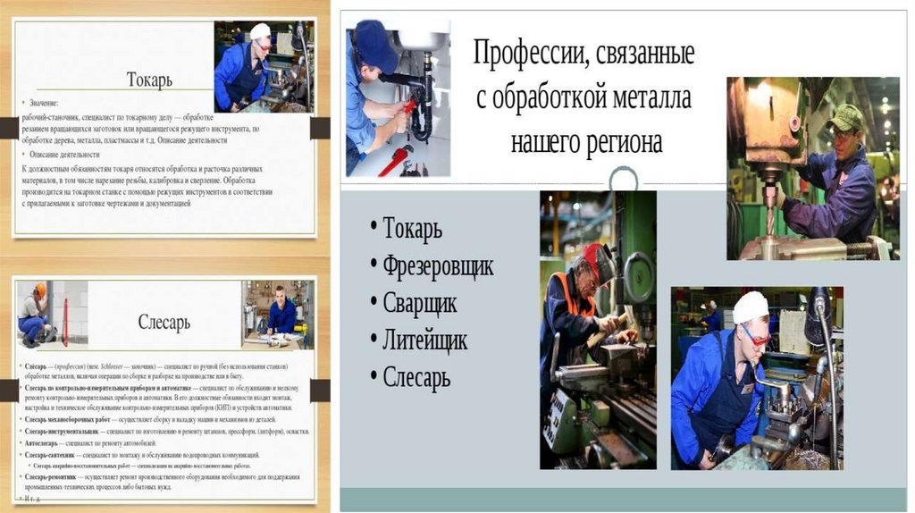 работы на токарном станке; специальности, связанные с обработкой металла.