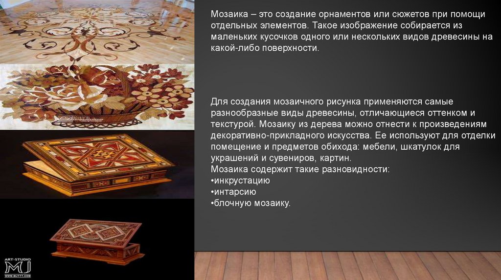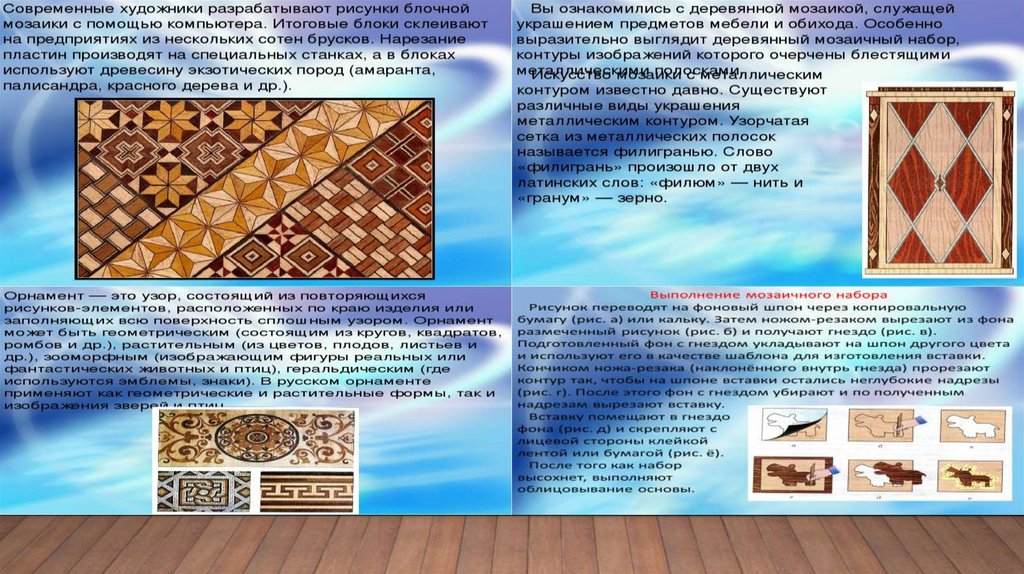 текстурой. Мозаику из дерева можно отнести к произведениям