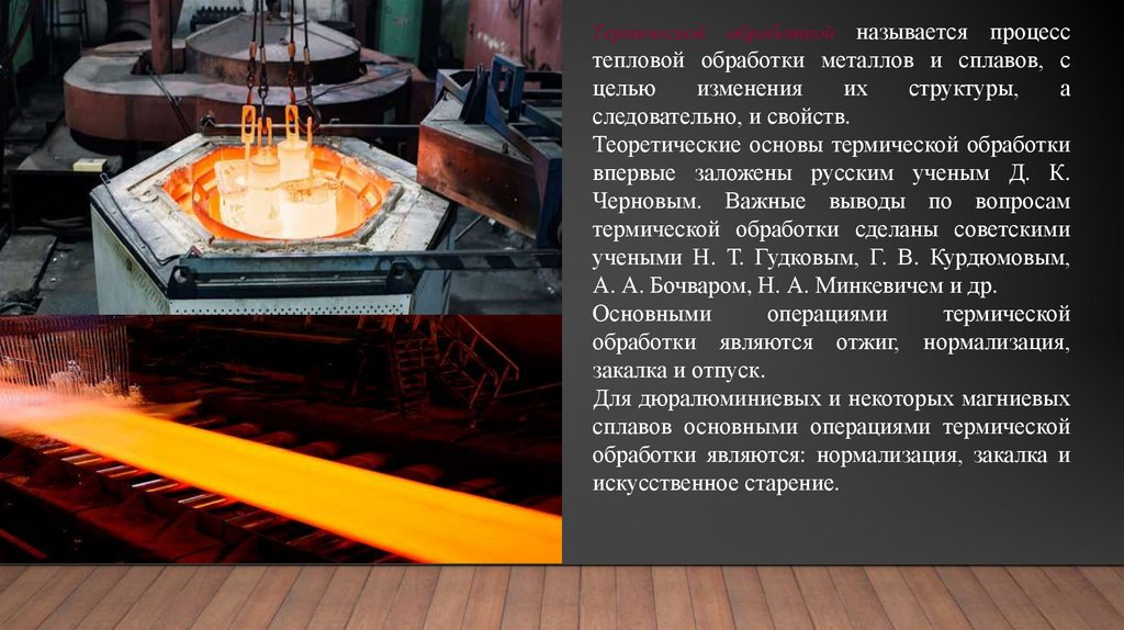 Термической (или тепловой) обработкой называетсясовокупность операций нагрева, выдержки и охлаждения твёрдых металлических