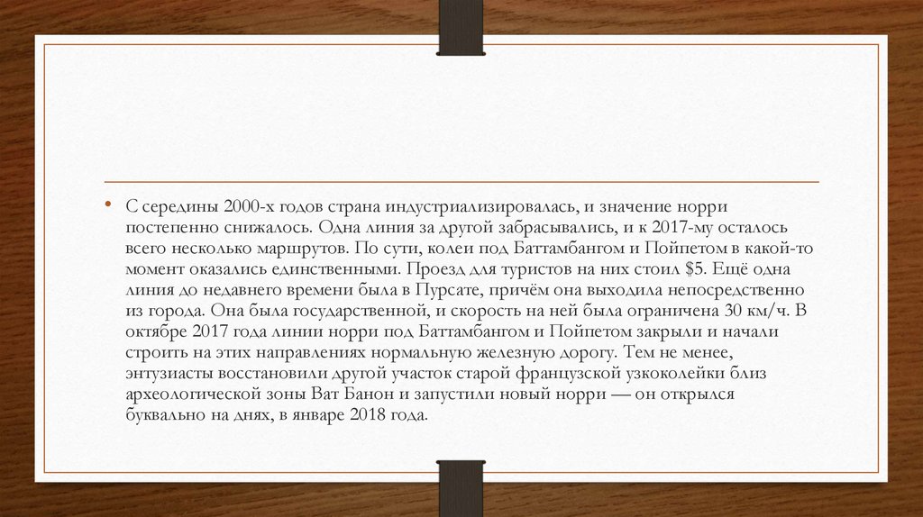 октябре 2017 года линии норри под Баттамбангом и Пойпетом закрыли и начали