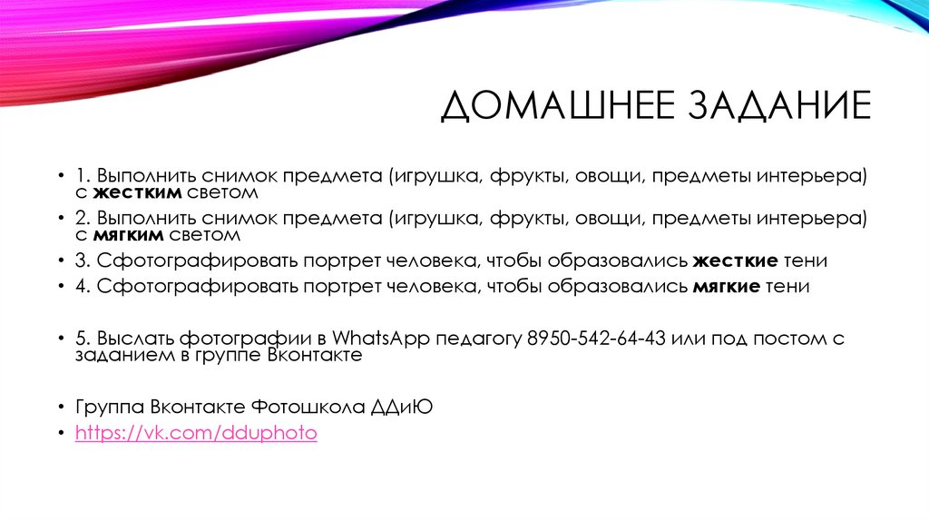 ДОМАШНЕЕ ЗАДАНИЕ• 1. Выполнить снимок предмета (игрушка, фрукты, овощи, предметы интерьера)