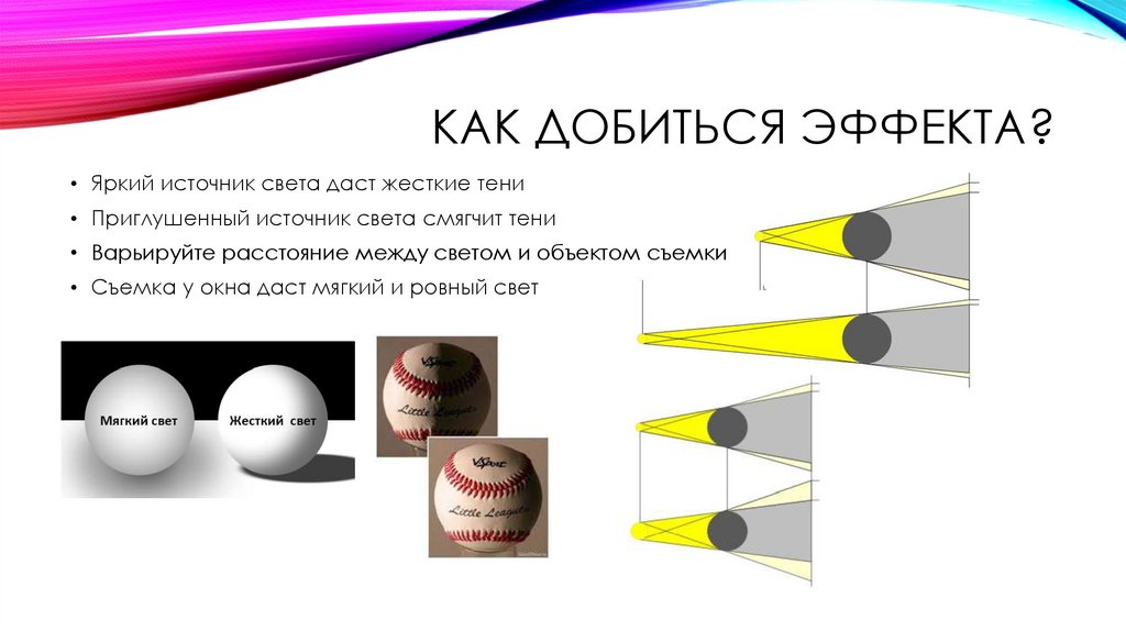 КАК ДОБИТЬСЯ ЭФФЕКТА?• Яркий источник света даст жесткие тени