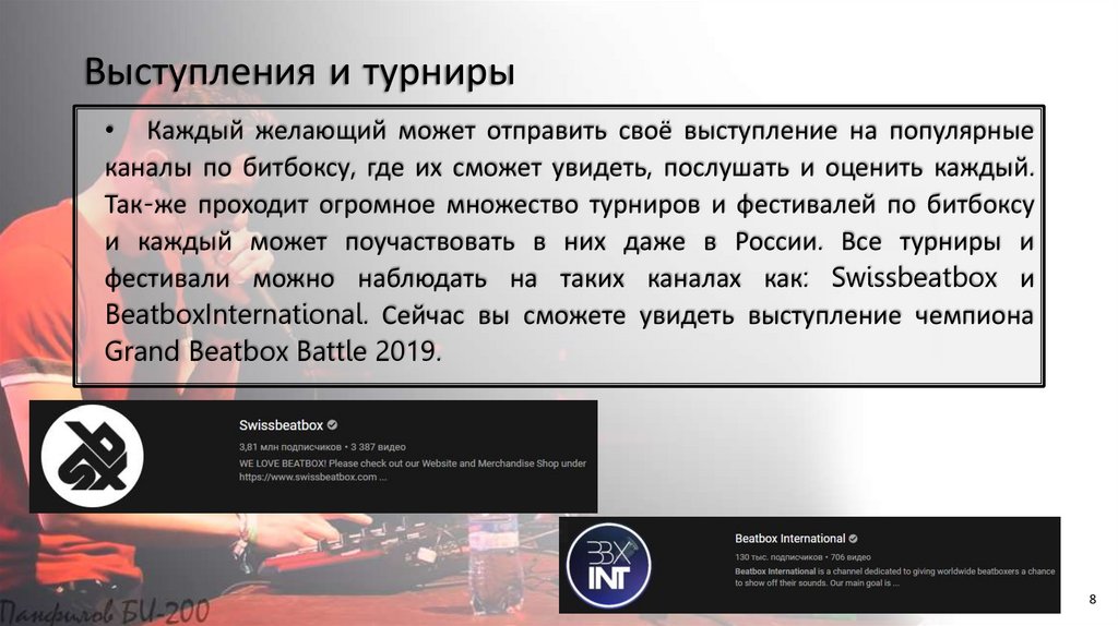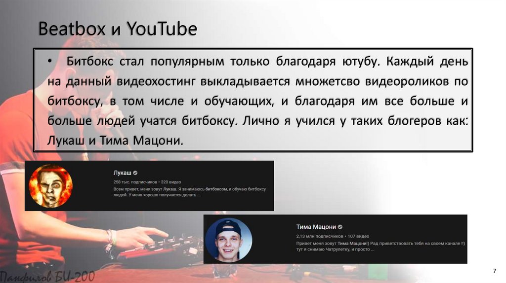 Beatbox и YouTube• Битбокс стал популярным только благодаря ютубу. Каждый день