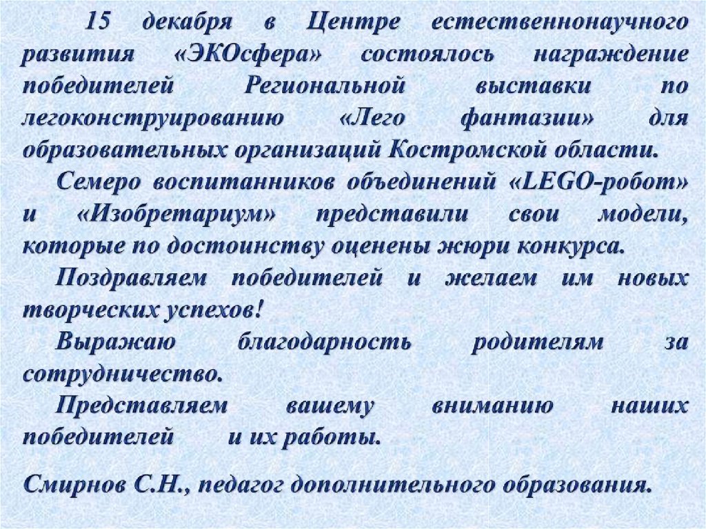 Лего-фантазии. Награждение по итогам регионального конкурса