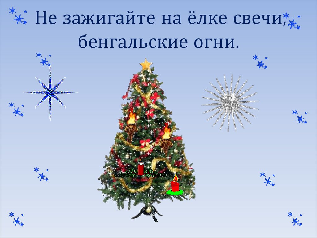 Не зажигайте на ёлке свечи,бенгальские огни.