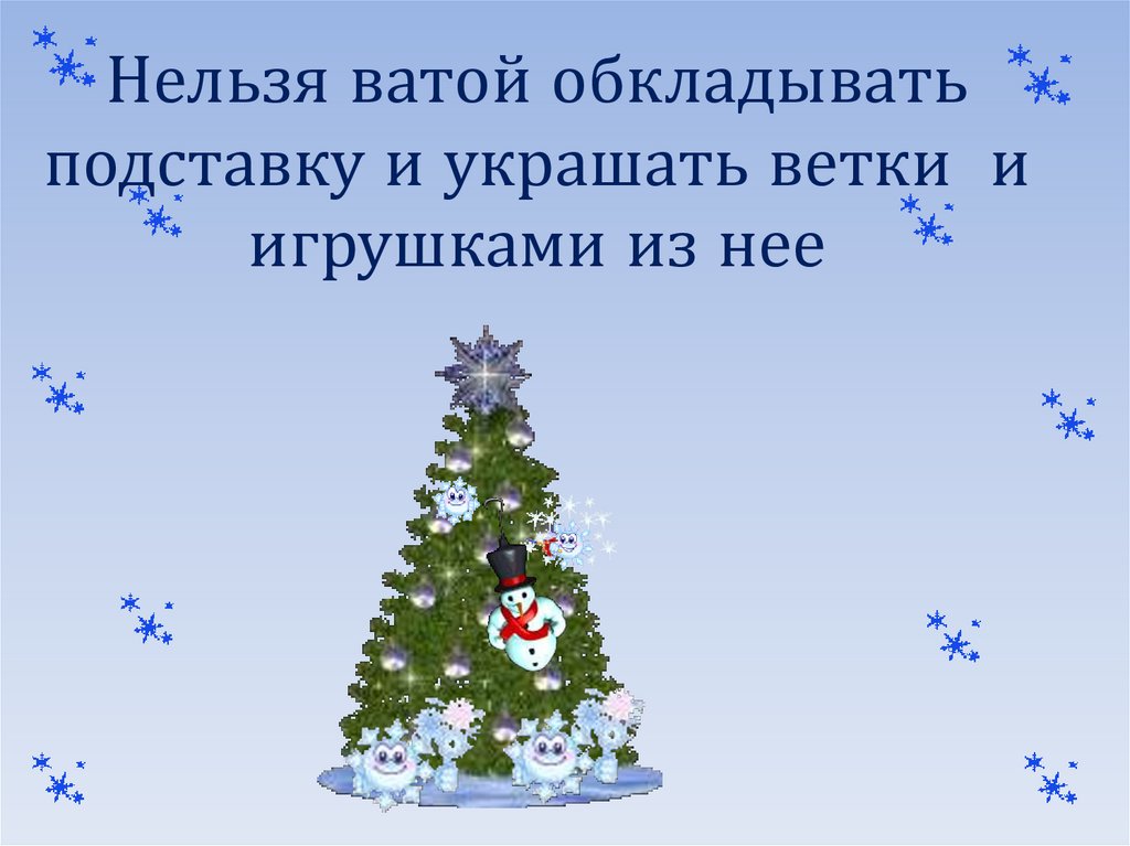 Нельзя ватой обкладыватьподставку и украшать ветки и